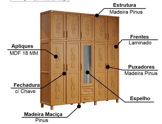 Puxadores: Madeira;