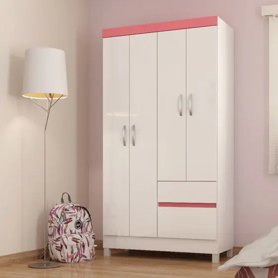 O Guarda-Roupa Lótus tem estrutura em MDP e revestimento em pintura UV. Cabideiro em madeira revestido. Gavetas externa com corrediças metálicas. Portas de giro com dobradiças metálicas. Puxadores em plástico ABS.